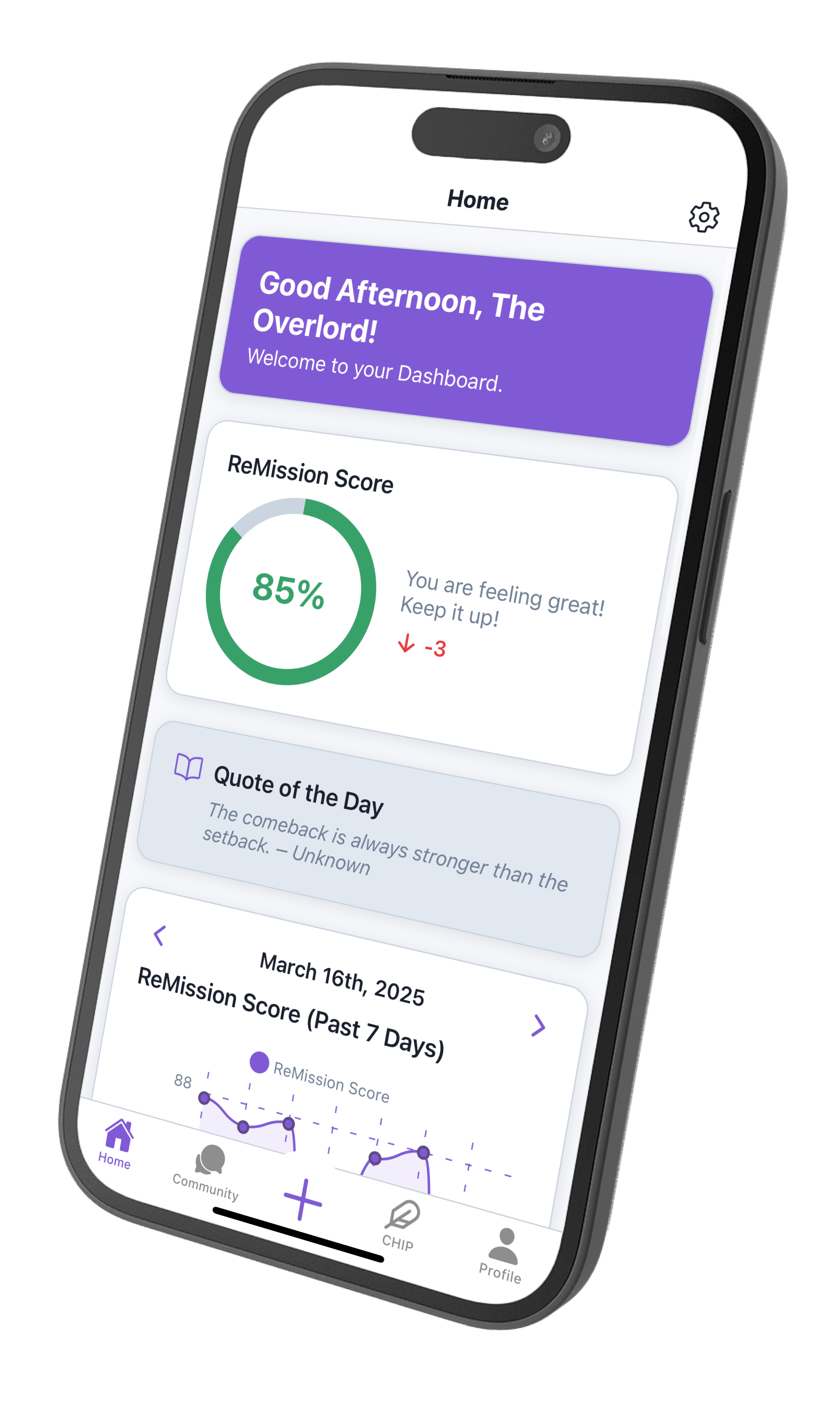 ReMission is the ultimate all-in-one platform for managing IBD. Effortlessly log your symptoms, connect with a supportive community, and gain real-time insights tailored to your unique health journey.